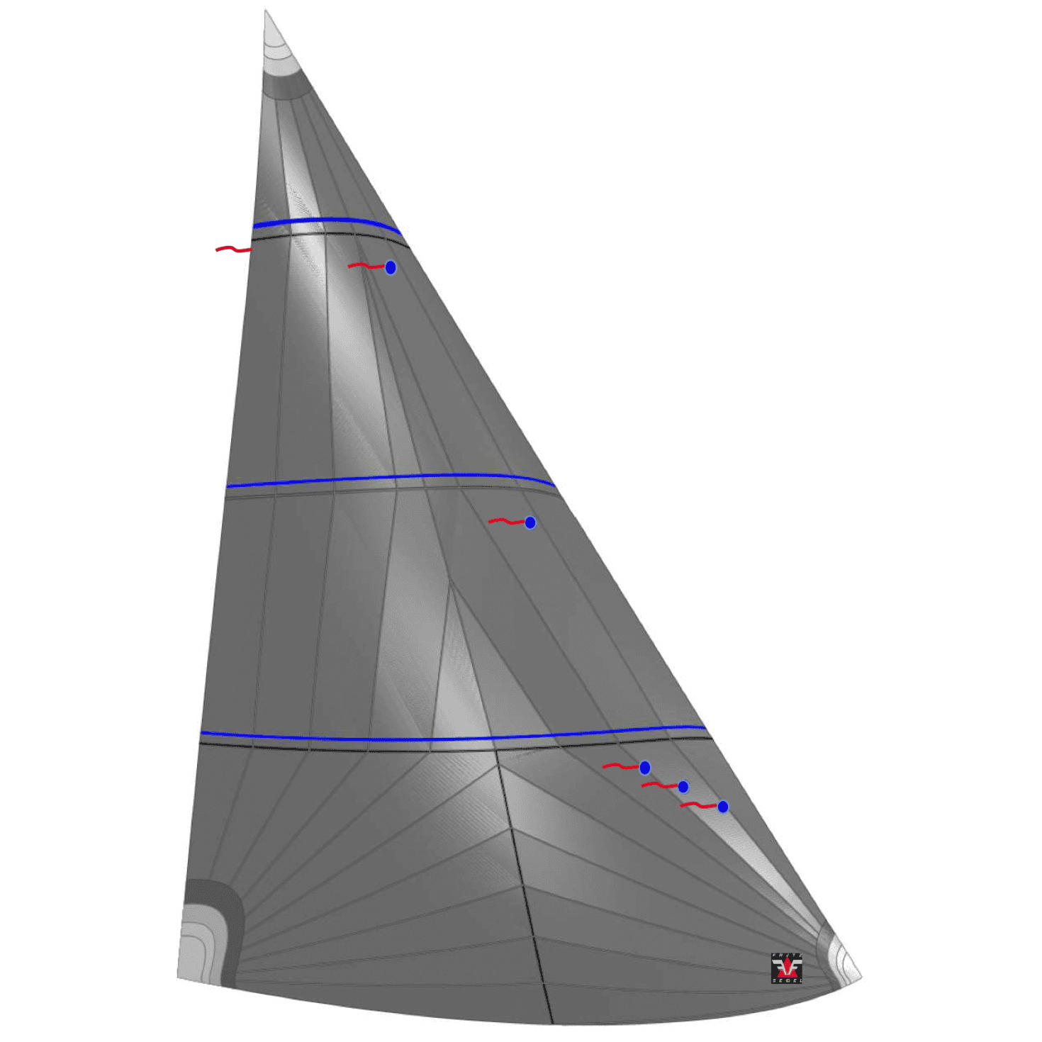 - Zusätzlich gibt es bei den asymmetrischen Segeln eine Breitenbeschränkung oder ein Flächenlimit berechnet mit einer Formel aus Vorliek, Achterliek, Unterliek und Mittelbreite